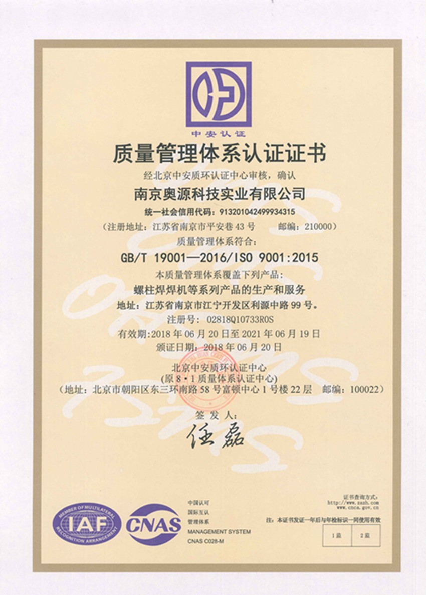 南京奥源科技实业有限公司是生产替代进口焊接设备的研发公司,主产品是:汽车制造业螺柱焊设备、非汽车业大螺柱焊接设备、悬点焊钳电极等备件。
